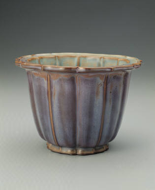 Lotus-shaped planter with grape-purple glaze