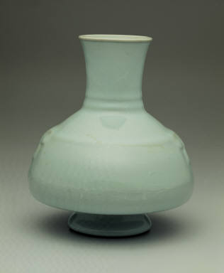 Hu-vase with animal heads in light bluish-green glaze