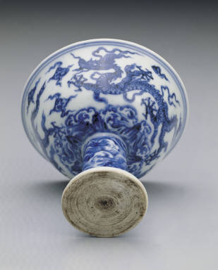 Stem cup with underglaze-blue decoration of with clouds, dragons and billows