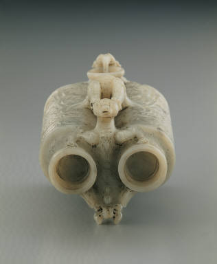 Jade adjacent cup. Imitation of Han bronze. Carving of eagle and bear used as a pun on the words Ying (falcon) and Xiong (bear)