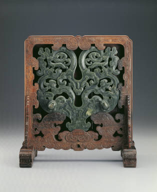 Wood stand with jade plague
