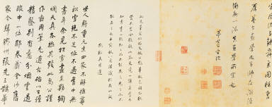 Autumn Colors on the Qiao and Hua Mountains has been recognized as a blue-and-green landscape executed in the style of wenren hua, or literati-style painting. Zhao Mengfu uses cyanid pigments mixed with mineral blue-green pigments for the two host mountains. The resulting pale blue differs from the light color of the islet as well as from the many delicate colors of the foliage, in effect generating great chromatic variety. The sloping riverbank and the area near the foreground water are an ochre color; while rooftops, tree trunks and foliage make use of red, yellow, and ochre hues. In his use of these warm colors and the cyanid blue-green, Zhao Mengfu demonstrates his skill in manipulating complementary colors. The result is exceptionally apt. The mineral blue-green conveys a sense of the translucency of a clean autumn coolness that is refreshing to the mind. But with the complementary colors, it also exudes an elegance and untrammeled quality that is both satisfying and harmonious. Autumn Colors on the Qiao and Hua Mountains expresses a kind of neutral tranquility, and not a lonely or desolate bleakness. This quality is one of the conceptions propounded by the literati painting. The ink and colors of the entire painting are harmoniously combined. In depicting these famous mountains in his autumn thoughts, Zhao Mengfu gives the appreciative spectator a complete dream vision of a distant, home village.