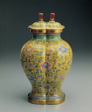 Painted enamel joined covered jars