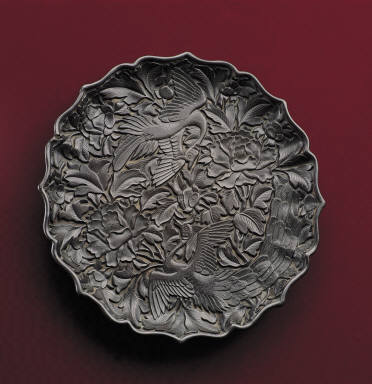 Dish with peacock and peony decor with black lacquer