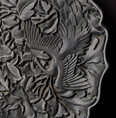 Dish with peacock and peony decor with black lacquer
