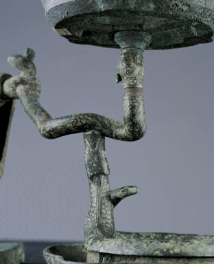 Bronze lamp with support of silver-headed human figure