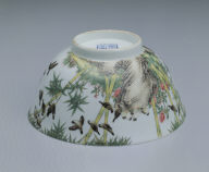 Bowl with sparrows among bam